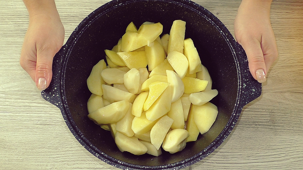 Начать стоит с подготовки ингредиентов: картофель и лук необходимо тщательно промыть и очистить. Картофель стоит нарезать на куски среднего размера, а лук можно нарезать кубиками или полукольцами — на ваш вкус.