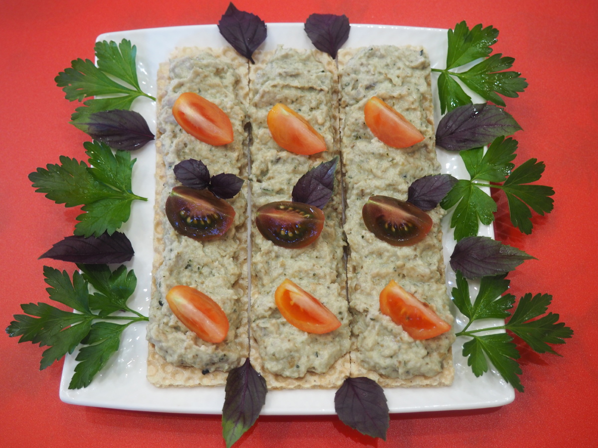 Для завершения блюда рекомендуется украсить намазку свежими листиками базилика, петрушки и несколькими дольками помидоров черри. Эта простая, но стильная подача станет отличным акцентом на любом столе.