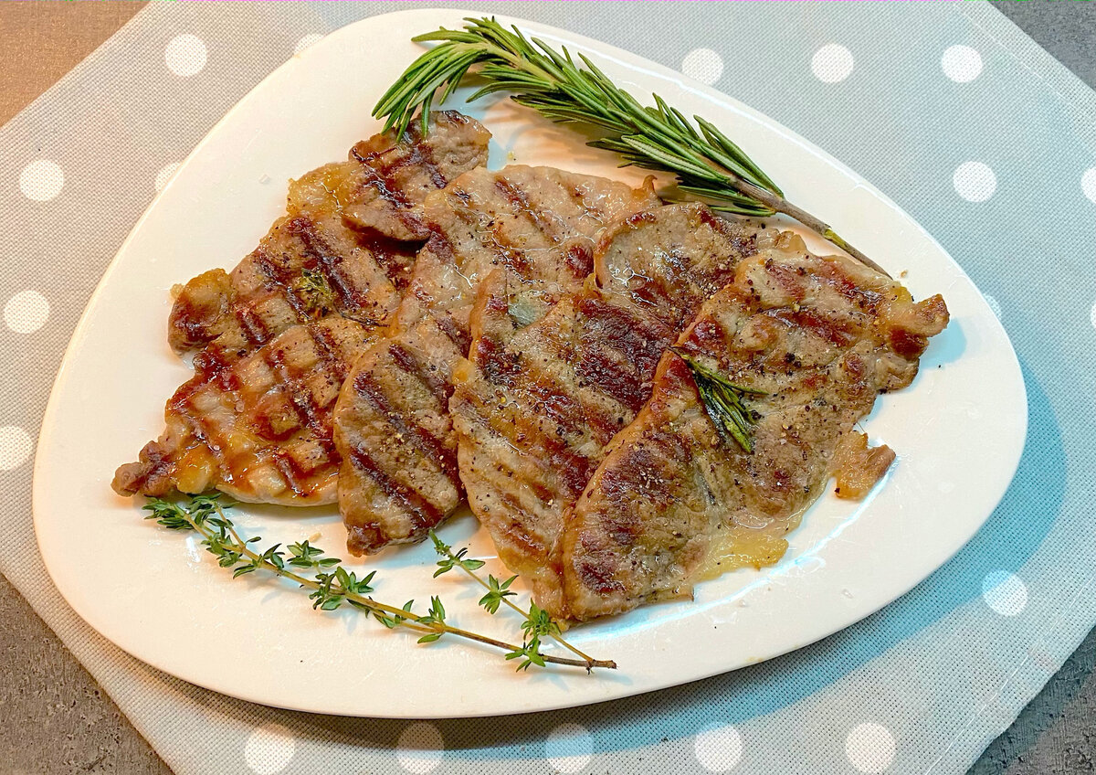Приготовление достаточно простое: необходимо нарезать свинину на тонкие ломтики, разогреть электрогриль и выложить мясо на панели (не смазывая их). Мясо не требует предварительной подготовки — достаточно лишь отправить его на гриль и закрыть крышку на 5-7 минут на средней температуре. Время готовки можно регулировать в зависимости от толщины нарезки.