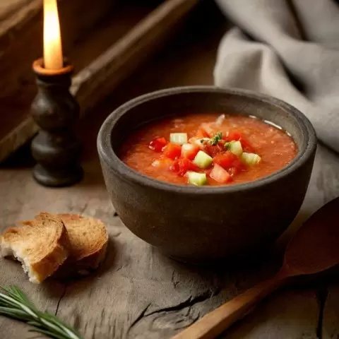 Путешествие начнётся с гаспачо «Золотой кувшин» — легкого холодного супа из спелых помидоров и овощей, который подтолкнёт вас к новым гастрономическим горизонтам. Затем вас ожидает кускус «Аль Альхамбра» — центральное блюдо с нутом и обжаренными овощами, которое предлагает настоящий фейерверк вкусов.