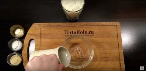 Из указанного объема воды в миску вливается несколько столовых ложек. Затем добавляется одна чайная ложка сухих дрожжей и столько же сахара. Смесь нужно тщательно перемешать и отставить на 10-15 минут для активации дрожжей.