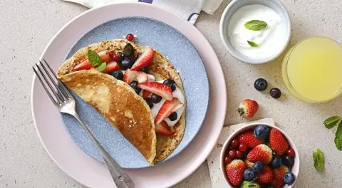 Овсяноблин с йогуртом и ягодами — это не просто вкусное, но и невероятно питательное блюдо. Овсяные хлопья, используемые в его приготовлении, насыщены клетчаткой, что способствует улучшению пищеварения. А йогурт с пробиотиками помогает поддерживать здоровье кишечника. Ягоды, в свою очередь, являются настоящим источником витаминов и антиоксидантов, которые поддерживают иммунитет и защищают организм от свободных радикалов.