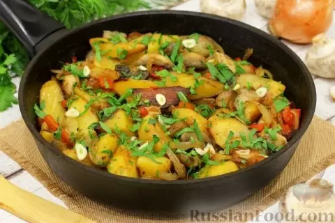 Картофель по-селянски с беконом, грибами и овощами — это не просто жареная картошка, а настоящая гастрономическая радость. Сочетание бекона, лука и грибов наполняет блюдо невероятным вкусом и ароматом, а овощи добавляют свежести.