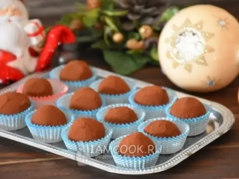 7. Обвалять трюфели в какао и уложить их в красивую коробочку или на десертное блюдо. Оставить в холодильнике еще на полчаса для окончательной стабилизации.