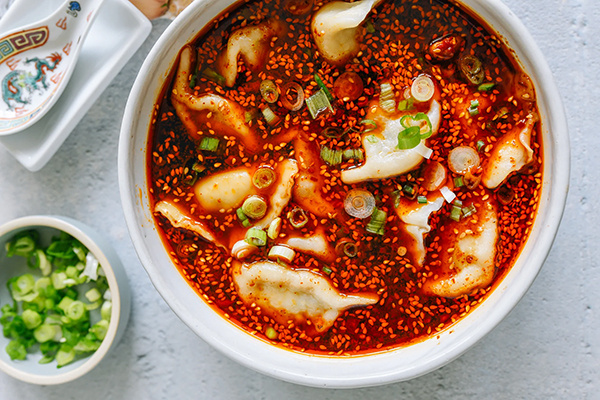 Основная идея заключается в том, чтобы сначала отварить пельмени, а затем подготовить ароматную базу из чеснока и чили, залить все горячим маслом и добавить немного отвара из пельменей, чтобы получить горячий, пряный и насыщенный суп.