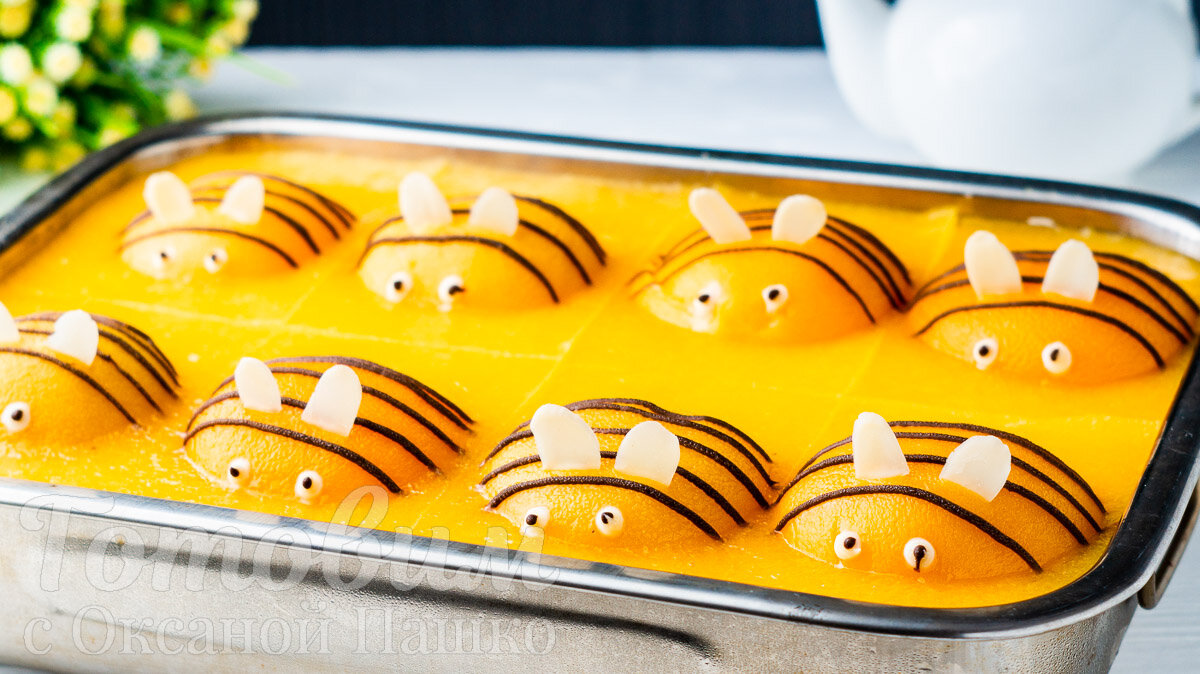 В основе торта — бело-шоколадный бисквит, пропитанный ароматным абрикосовым сиропом, с добавлением нежного заварного крема. Украшают десерт абрикосовые пчелки, выложенные на сладком абрикосовом желе, напоминающем мед. Хотя процесс приготовления может показаться трудоемким, на самом деле он достаточно прост и может быть выполнен в разъемной форме, что значительно упрощает извлечение готового изделия.