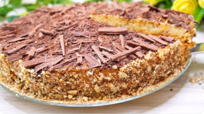 7. Разрежьте бисквит на 2-3 коржа, промажьте кремом и украсьте орехами или шоколадом. Дайте настояться хотя бы 20 минут, и угощение готово к подаче!