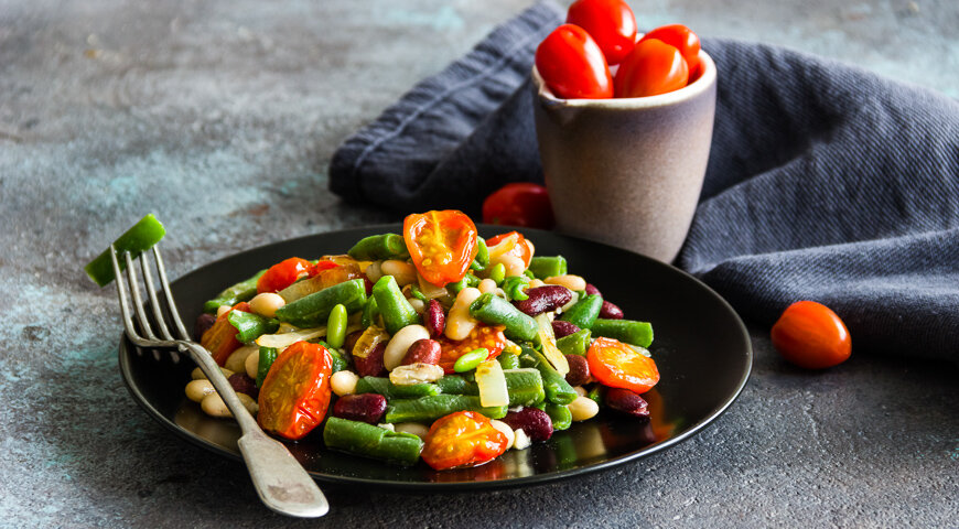 Если кто-то из ваших близких не может представить ужин без мяса или рыбы, теплый салат с фасолью способен стать отличным дополнением к мясным деликатесам.