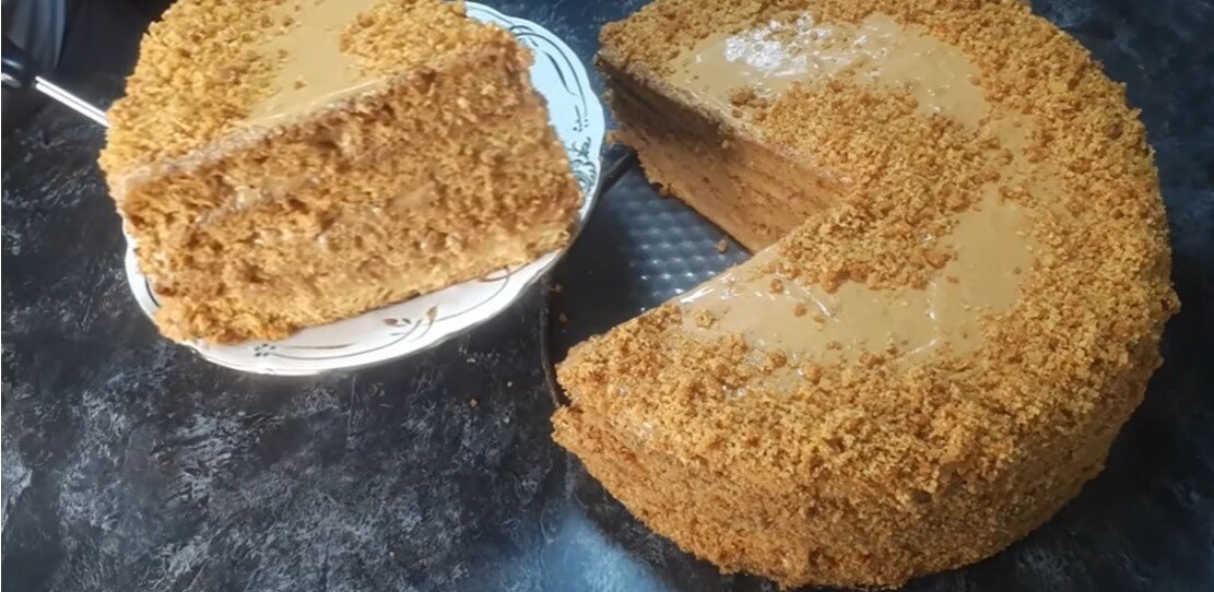 Для приготовления бисквита достаточно смешать все ингредиенты и выпекать в духовке при температуре 180 градусов около 30–35 минут. Заранее рекомендуется приготовить две порции, а затем остудить и разрезать каждый корж на две части, в итоге получится четыре слоя. При желании, крем может быть приготовлен из творога, который следует взбить до однородной консистенции и равномерно нанести на коржи. Декорировать торт можно как угодно — даже простой бисквитной крошкой. Это бюджетное, но очень вкусное лакомство станет настоящим украшением вашего стола.