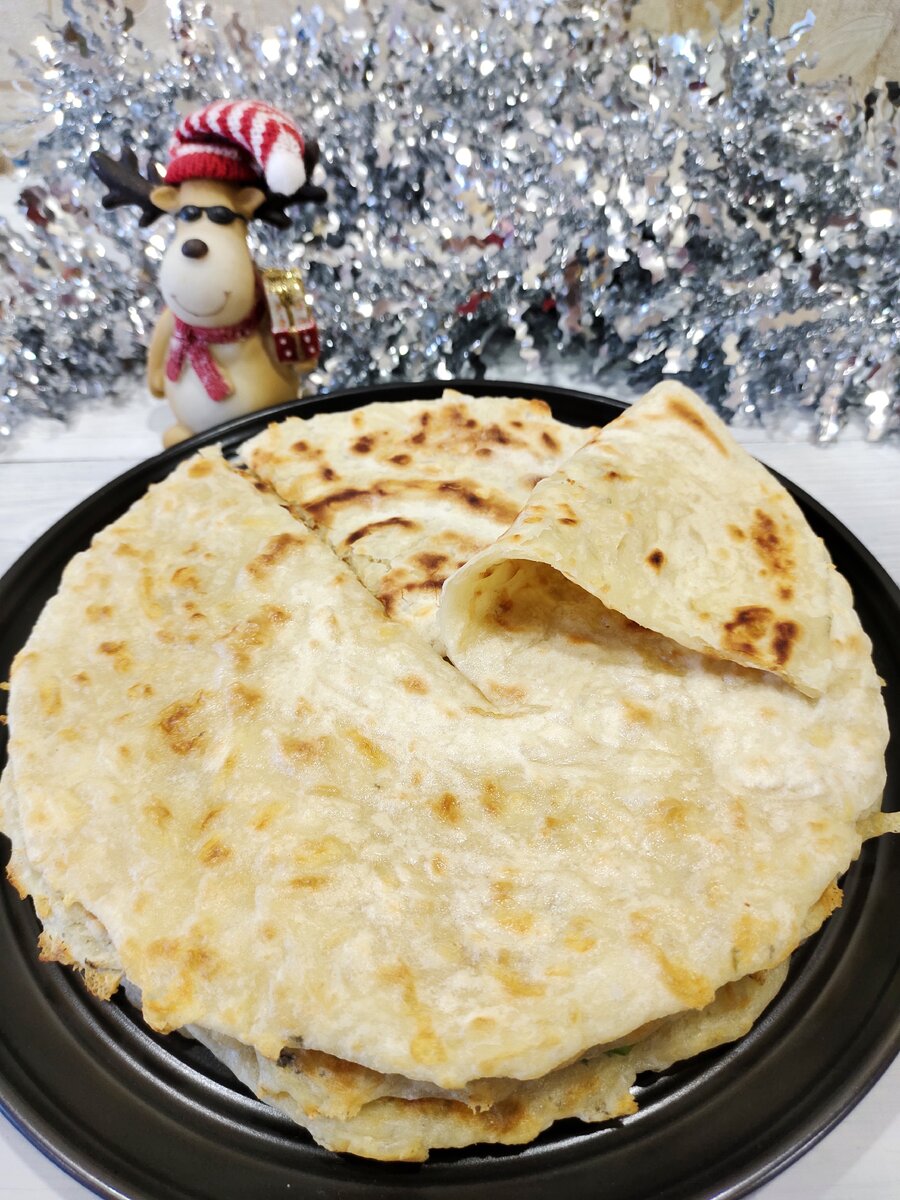 Не беспокойтесь, если начинка немного вылезает, это нормально. Обжаривайте лепёшки на сухой сковороде по три минуты с каждой стороны до золотистой корочки.