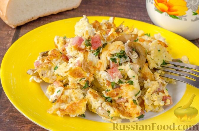 - Ингредиенты: яйца, картофель, ветчина, кукуруза, специи, растительное масло, зелёный лук.