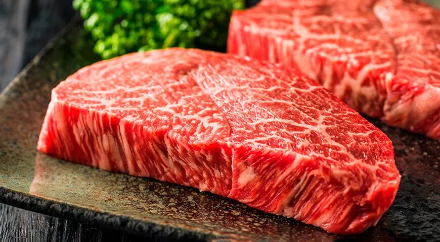 Что касается кобе, то именно это название относится к мясу особых бычков породы таджима, выращенных в префектуре Хёго. Кобе-гю отличается высокой мраморностью и считается деликатесом. На срезе он выглядит, как произведение искусства с белоснежными жировыми прослойками и ярким красным мясом. Стейки кобе могут стоить десятки долларов за несколько кусочков. Этот продукт имеет строгое наименование, контролируемое по происхождению, подобно тому как шампанское производится только во Франции.