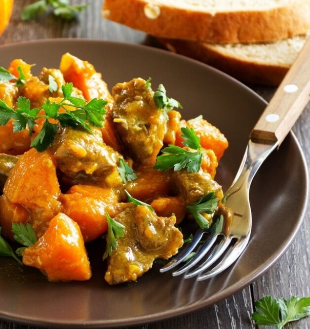 Когда тыква станет мягкой, тушение можно завершать. Для подачи не забудьте оставить немного бульона, а украсить блюдо свежей петрушкой, что добавит ему аромата и яркости. Это калорийное и насыщенное блюдо не требует дополнительно гарнира и отлично подойдет к любому столу.