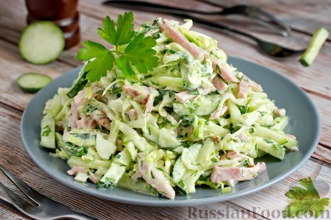 Этой весной в меню добавились свежие салаты, которые порадуют разнообразием и вкусом. Вниманию публики предложены такие рецепты: салат из молодой капусты с огурцами и ветчиной; слоёный салат с рыбными консервами, картофелем и огурцами; салат из кукурузы, щавеля и яиц; салат с курицей и редиской, а также салат с куриной печенью и огурцами.