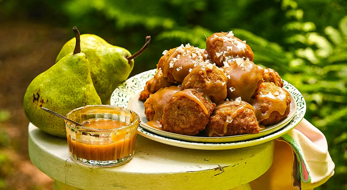 Пончики с грушей и солёной карамелью представляют собой настоящую находку для любителей сладостей. Это прекрасное сочетание мягкого теста, сочной фруктовой начинки и насыщенной карамели с лёгкой солёной ноткой создаёт атмосферу праздника. Груша добавляет пончикам нежность и сладость, а солёная карамель добавляет глубину вкуса, делая десерт по-настоящему изысканным. Такие пончики станут настоящим украшением любого праздничного стола, радуя всех любителей оригинальных сладостей.