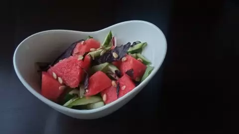 Салат из арбуза и огурцов — это настоящий кулинарный шедевр, готовящийся всего за 15 минут. Даже тот, кто делает первые шаги на кухне, сможет справиться с этим простым и освежающим рецептом.