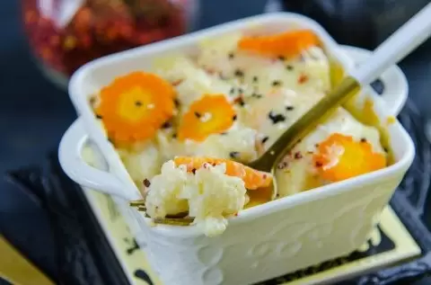 1. Подготовка овощей: В кастрюле закипятить подсоленную воду и добавить нарезанную кружочками морковь. Через 10 минут следует добавить цветную капусту, варить до мягкости, но так, чтобы она не разваливалась на куски.