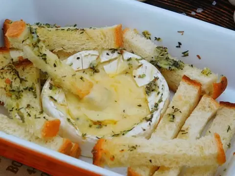 Когда Камамбер будет готов, достаньте его из духовки и подавайте в компании поджаренного багета. Можно дополнительно полить сыр медом или подать с вареньем для контраста вкусов. Это сочетание вкусов и ароматов удивительно вкусно и обязательно понравится вашим гостям!