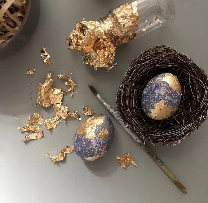 Если раньше яйца окрашивали натуральными красителями, отдавая дань традициям, то сейчас в этот процесс внедряют креативные идеи и стиль. Поталь — это тончайший элемент, имитирующий золото, который позволяет сохранить символику праздника, но представить её в новой интерпретации.