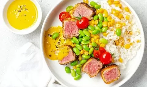 - Запеченный тунец под манго-майонезом.