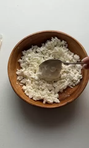 1. В глубокой миске смешать творог с яйцом и подсластителем до однородной массы.