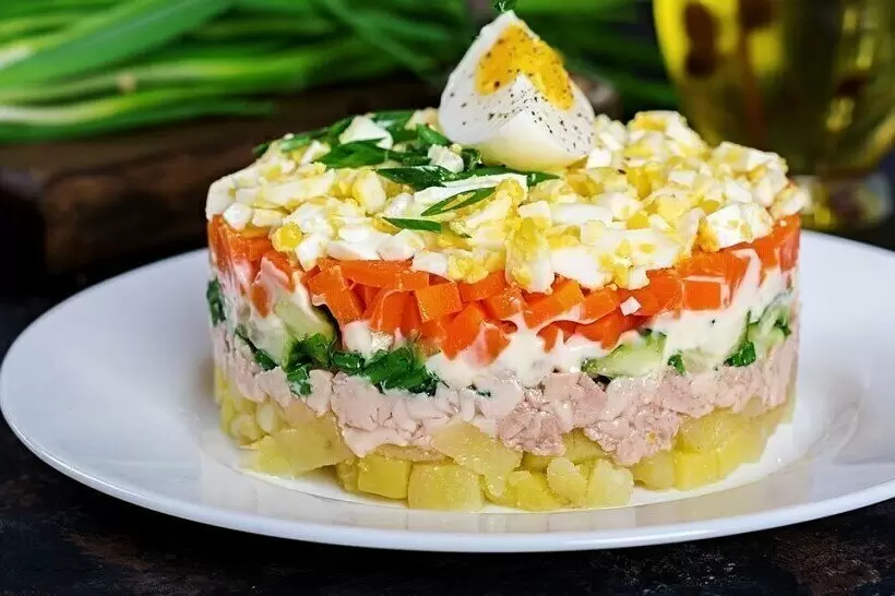 В завершение, салат можно украсить мелко нарезанной зеленью, оливками и дополнительными ломтиками яйца для яркого оформления. Это блюдо оценят даже самые взыскательные гурманы!